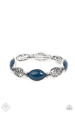 Dewy Navy Blue opals set in daintily studded silver frames mingle with frames of swirling silver filigree as they alternate along stretchy bands for a whimsically wild fashion around the wrist.